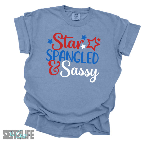 Turn heads this 4th of July in the ultimate blend of comfort and attitude. This Comfort Colors tee brings the fireworks with its playful “Star Spangled & Sassy” design—perfect for bold spirits who love a little red, white, and YOU.